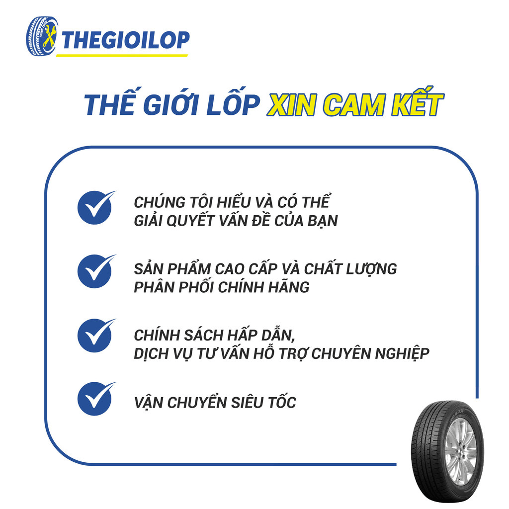 - Dịch vụ lắp đặt tại nhà / Cứu hộ lốp/ ắc quy: Quý khách vui lòng liên hệ Hotline 093.789.86.88 để được hỗ trợ.