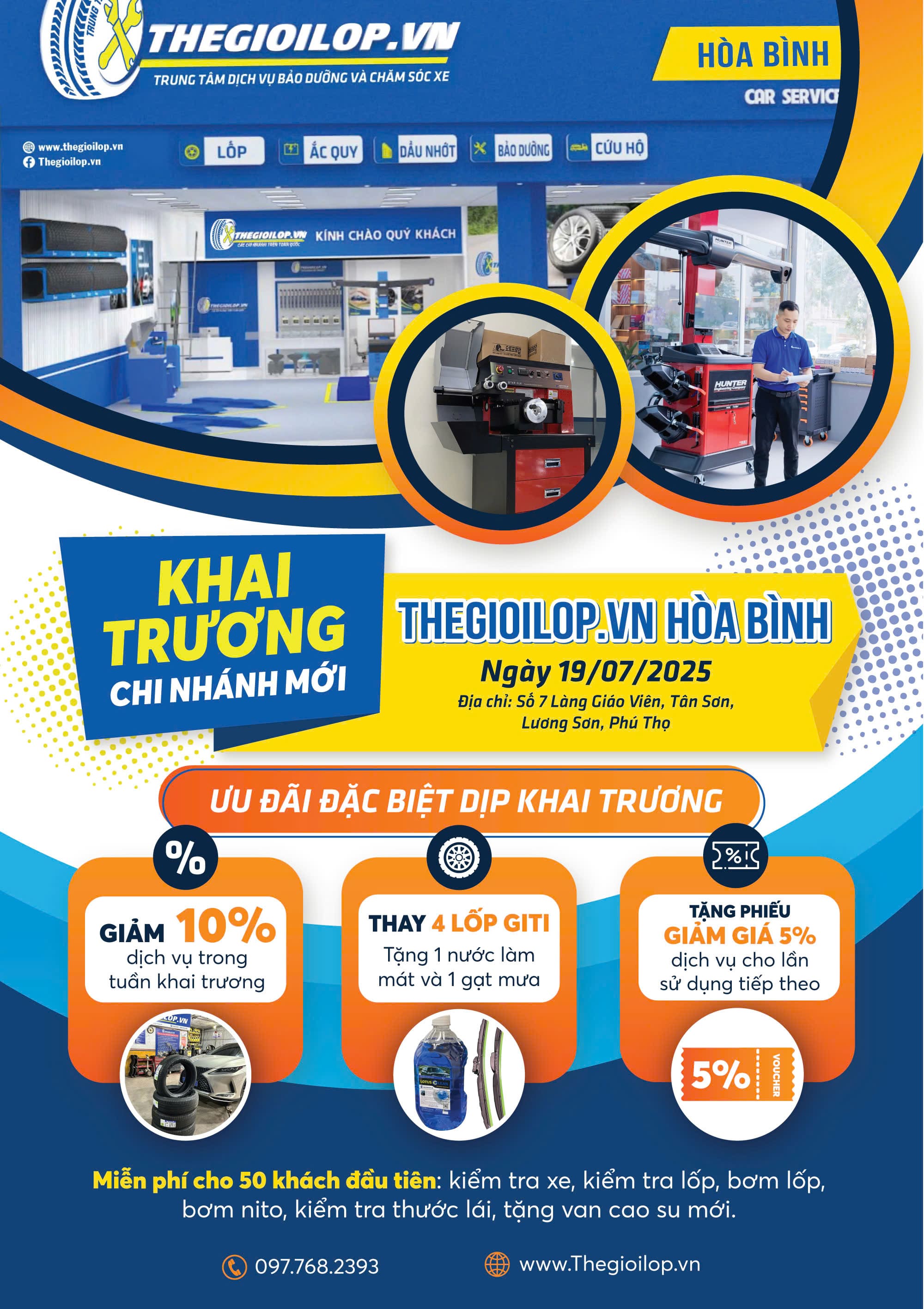 Chúng tôi rất vui mừng được đón tiếp quý khách hàng tại chi nhánh mới của Thegioilop.vn Tay Pak ở Số 7 Làng Giáo Viên, Tân Sơn, Lương Sơn, Phú Thọ (khu vực Hòa Bình cũ). Từ nay, bạn có thể dễ dàng tiếp cận dịch vụ bảo dưỡng xe hàng đầu mà không cần phải đi xa.