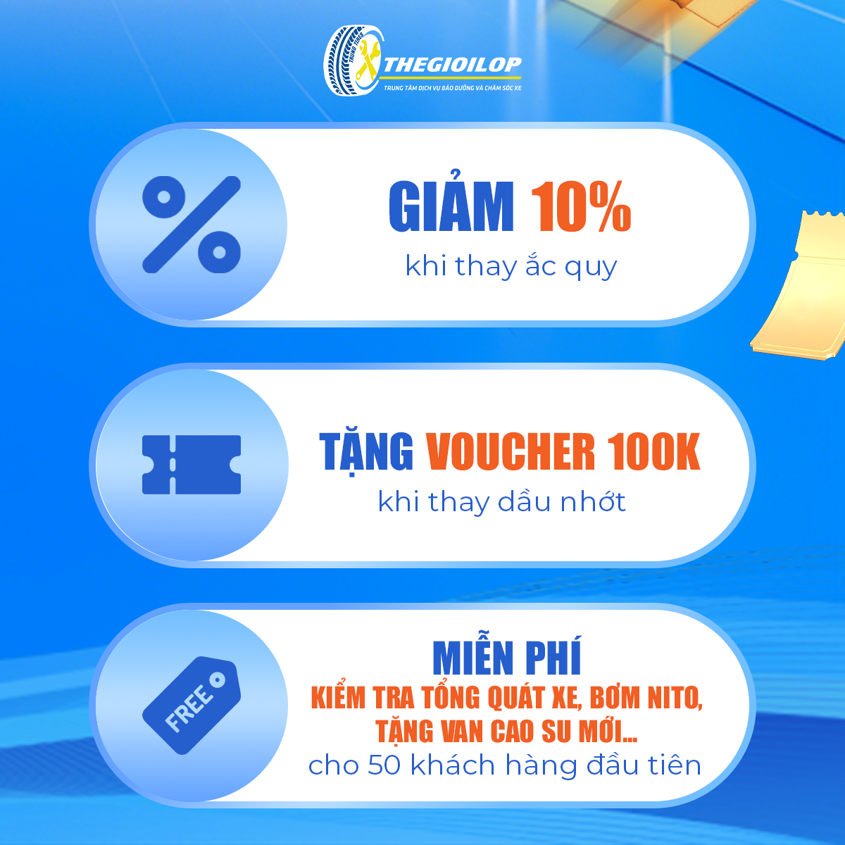 - VOUCHER 100.000Đ trao tay khi thay dầu nhớt